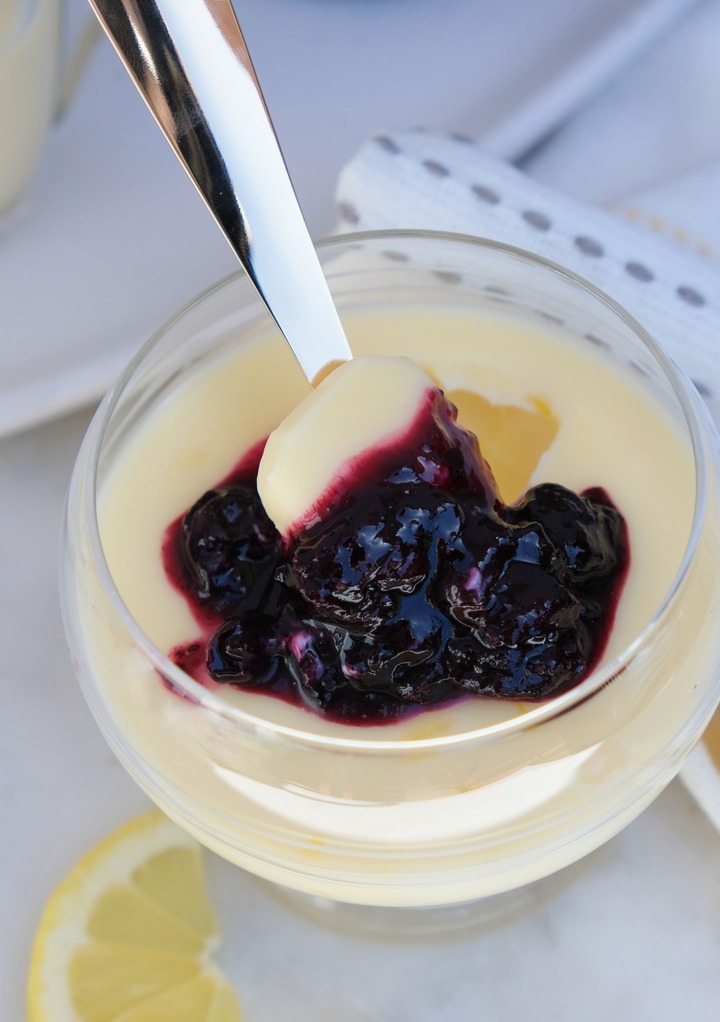 Remove the pan from the heat and stir in the lemon juice. Pour the lemon mix into the glasses and refrigerate for at least 4 hours or overnight.